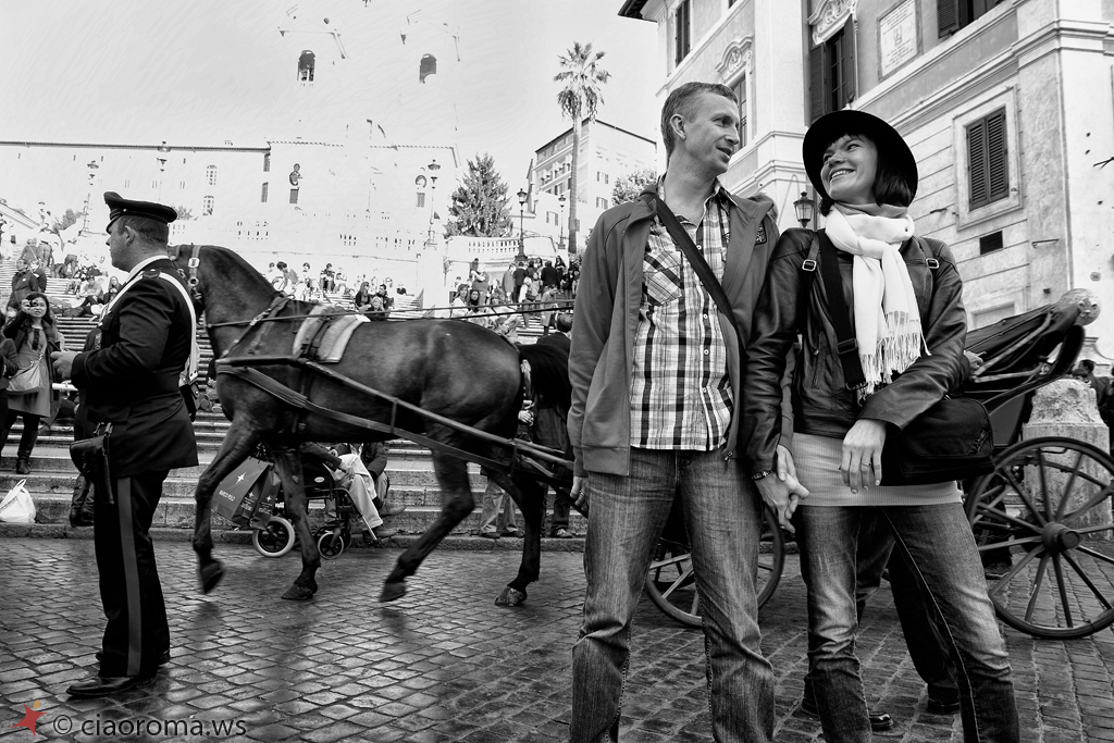 Tatyana e Anton sono di Mosca, una metropoli con ritmi di vita elevati ed a volte stressanti, che spesso non concede tempo di relax ai suoi abitanti. Questo è uno dei motivi che ha portato questa felice coppia a Roma per la loro vacanza, vedere un'antica città che li ha appassionati per molto tempo.
