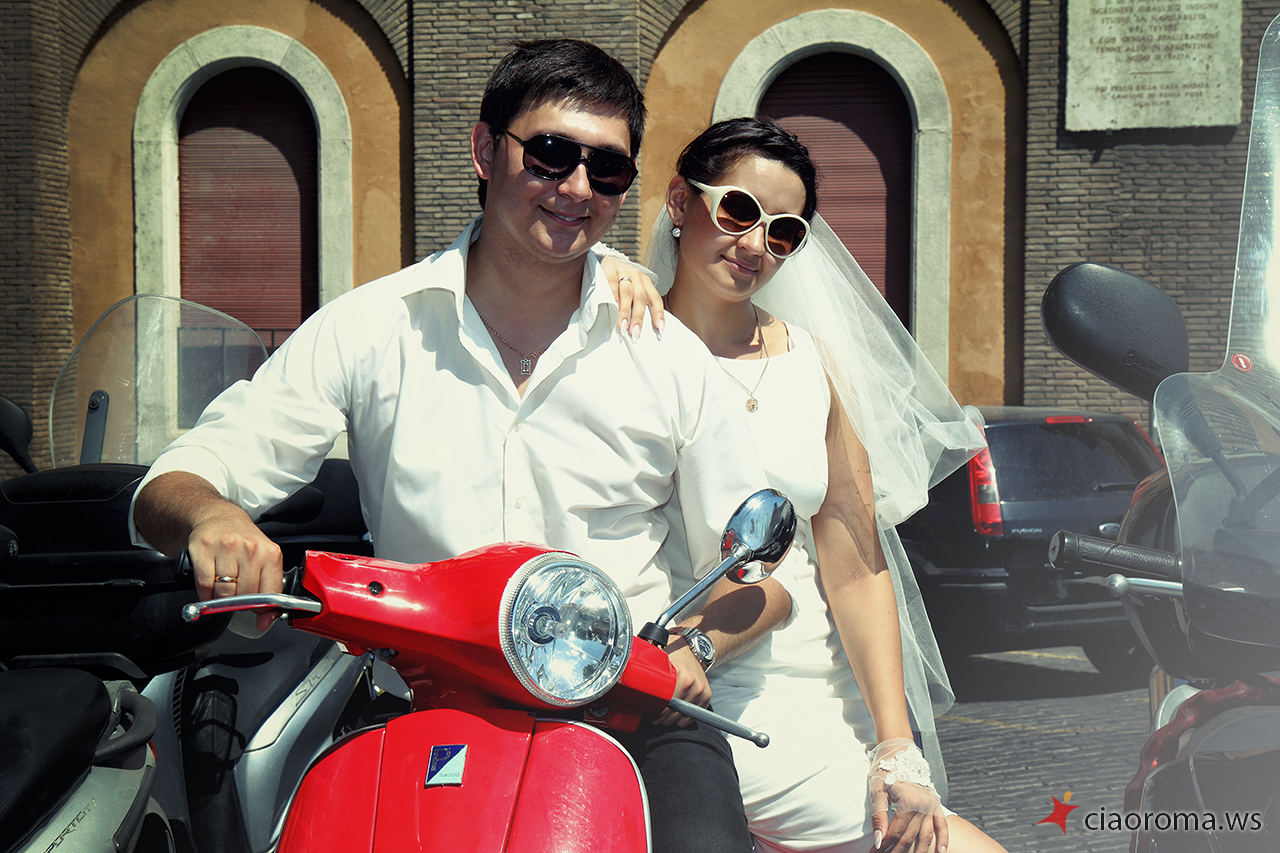Arrivati stanchi e sfiancati dal buon caldo romano, abbiamo finito il nostro bel tour fotografico all'Isola Tiberina con una bella Vespa rossa.