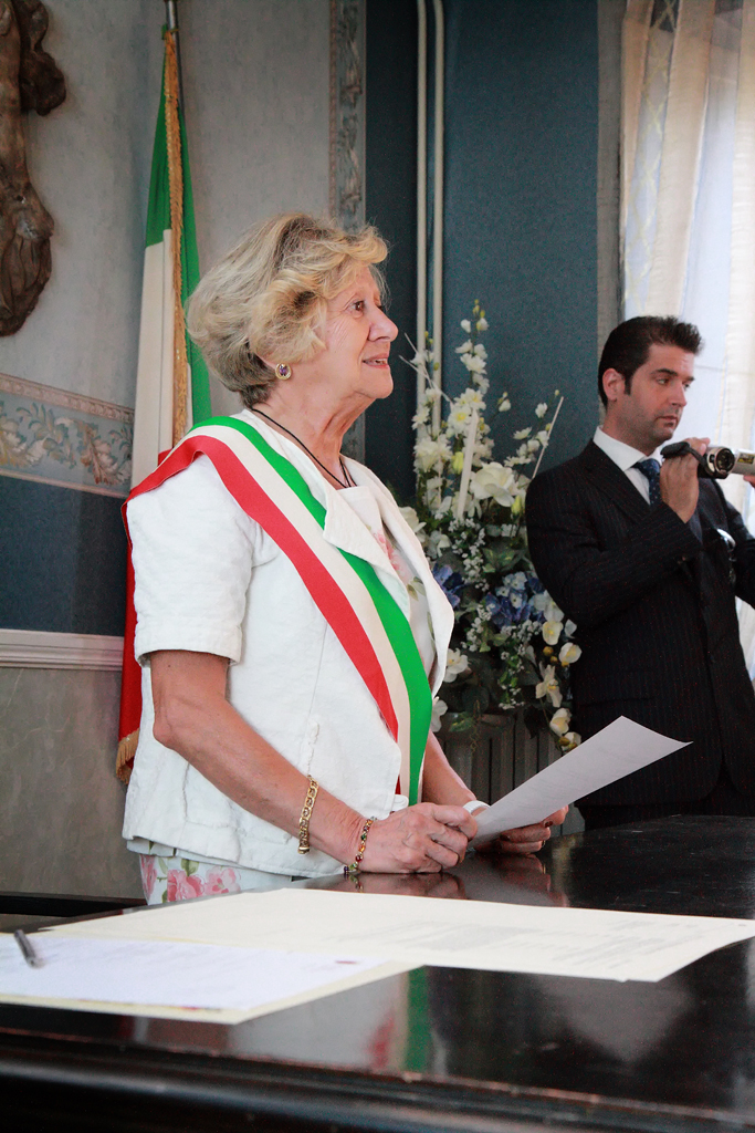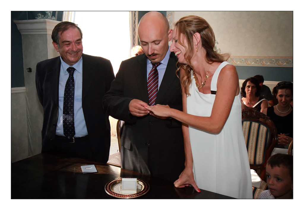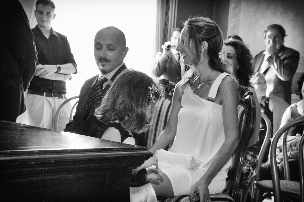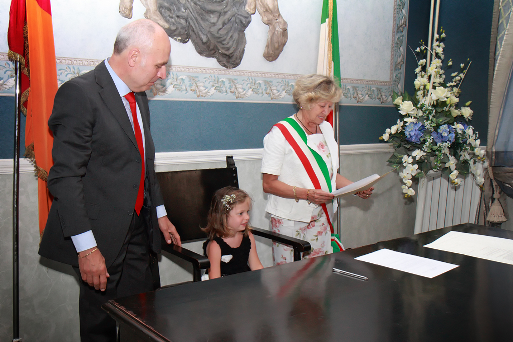 Il momento più carino della cerimonia è stato quando la figlia dei due sposi ha voluto sedersi sulla sedia del messo comunale, la signora è stata gentilissima e la bambina per qualche momento è diventata come una principessa sul suo trono.