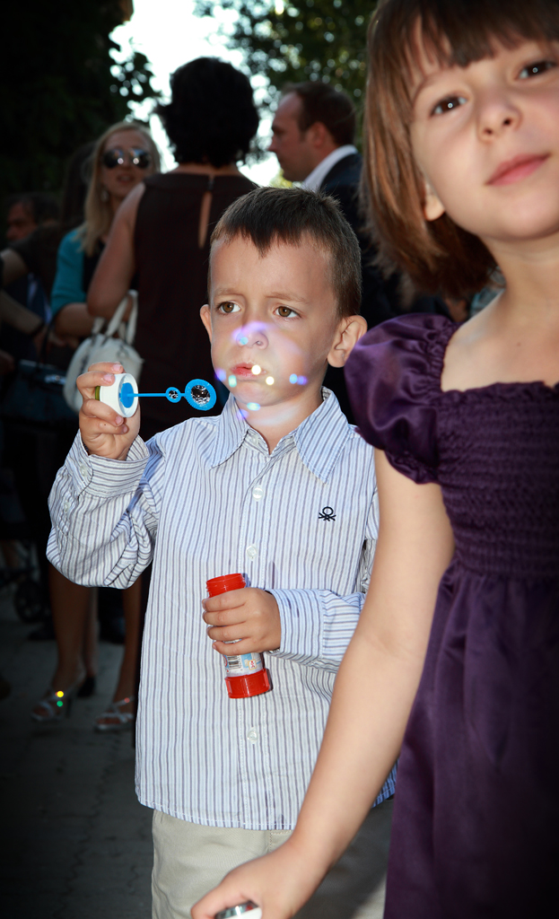Ho fotografato i parenti, i bambini che giocavano con le bolle di sapone, e qualche gran sorriso della sposa con gli invitati.
