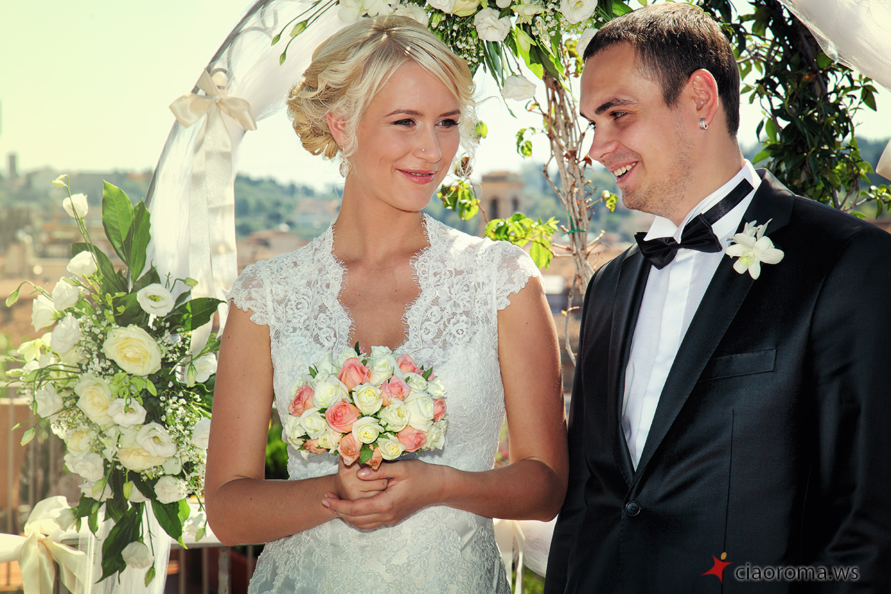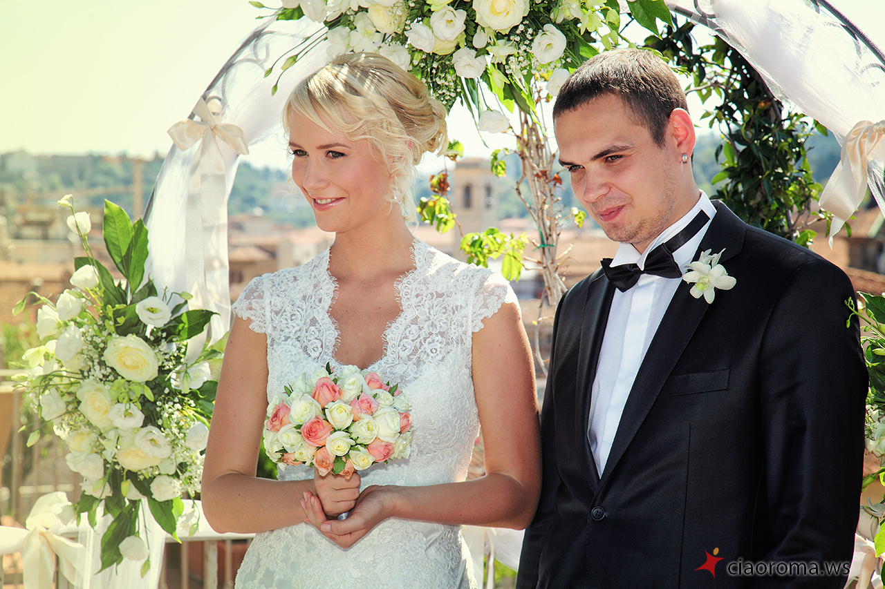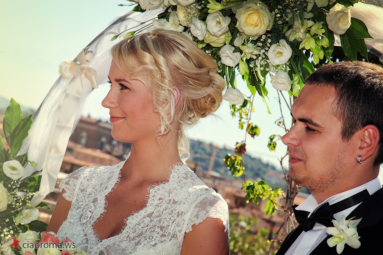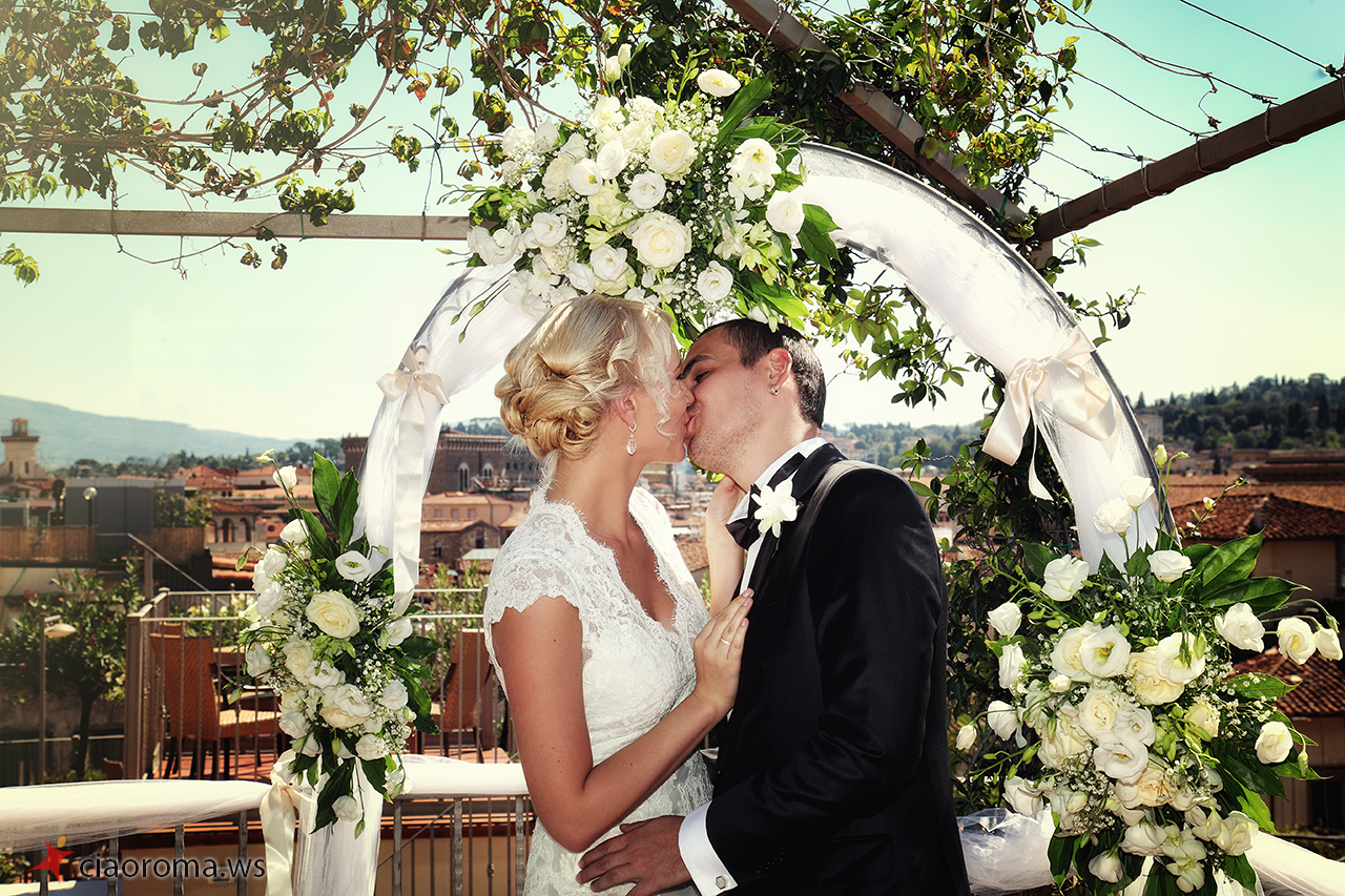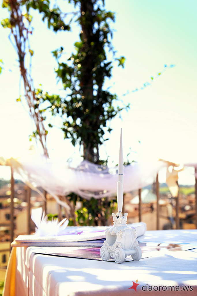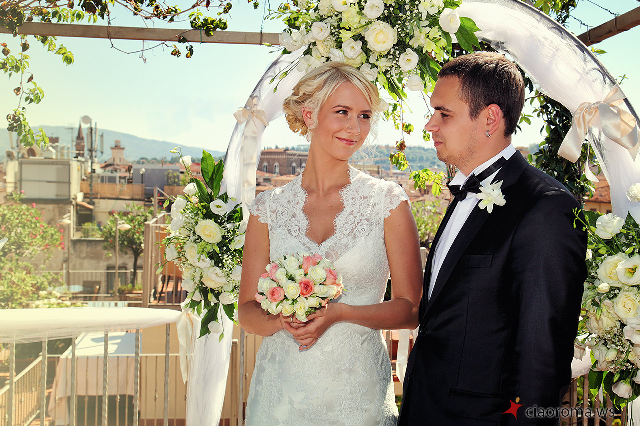 Arrivato a Firenze di mattina presto, nella zona centrale vicino alla Stazione Santa Maria Novella, sono andato a visionare il luogo della cerimonia, le terrazze dell'Hotel Baglioni. Sul posto c'erano già la Wedding Planner, il fiorista con la sua squadra di aiutanti ed il maître di sala che prendeva le indicazioni per il pranzo nuziale. Il panorama era stupendo, si potevano osservare tutti i principali monumenti di Firenze come il Duomo ed il Campanile di Giotto, il Ponte Vecchio, la Chiesa Protestante Episcopale Americana, Palazzo Pitti.