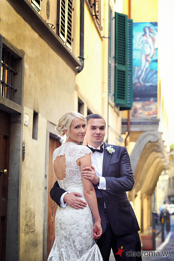 Sono stato contattato da un'agenzia turistica di Mosca in cerca di un fotografo che potesse effettuare il servizio matrimoniale per una giovane coppia che voleva effettuare il matrimonio simbolico nella splendida Firenze. Mi sono interessato a conoscere i gusti fotografici dei due sposi e, capite le loro esigenze, ho accettato ben volentieri questo gradevole compito.