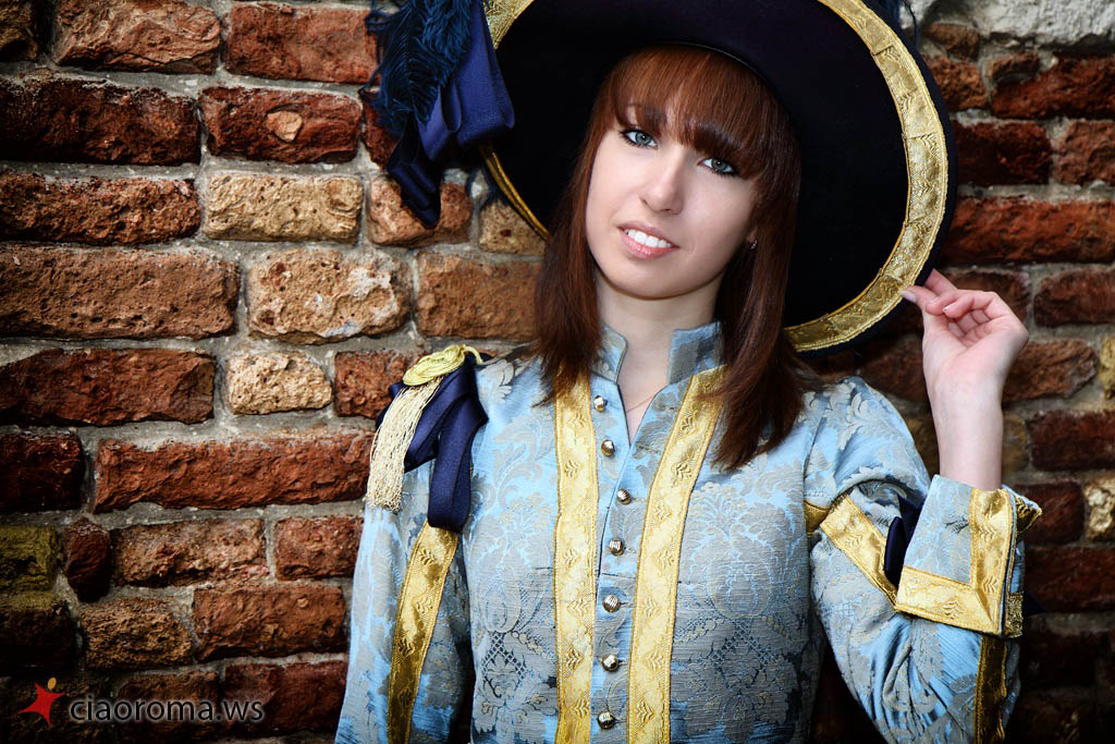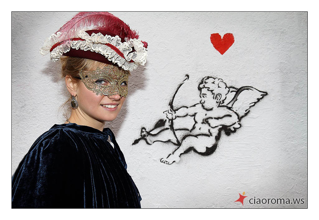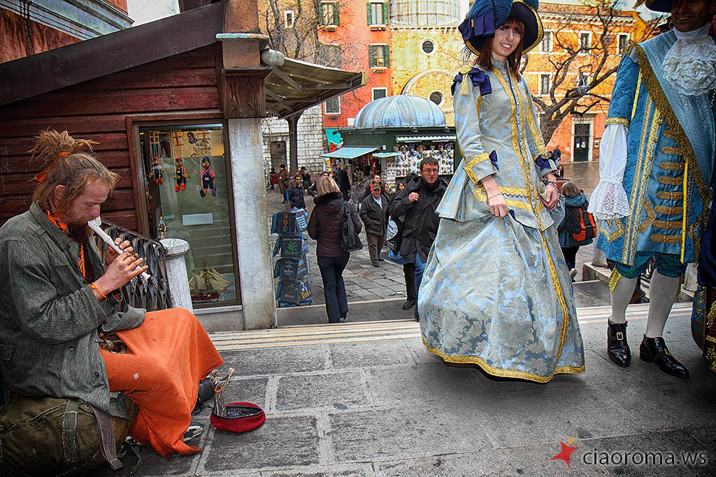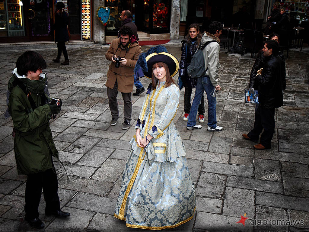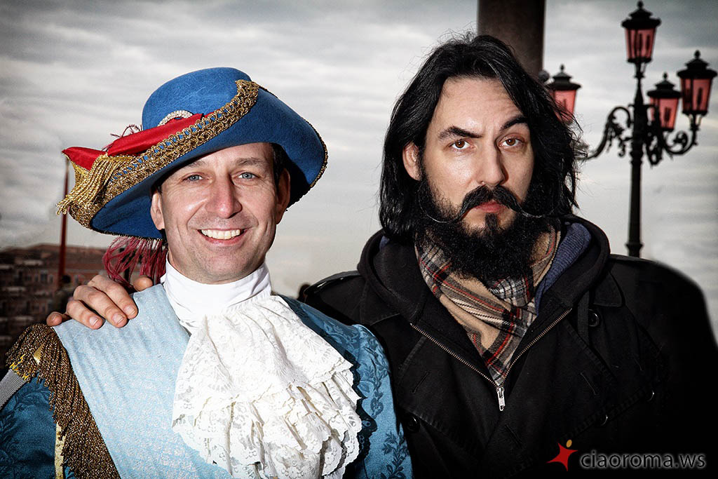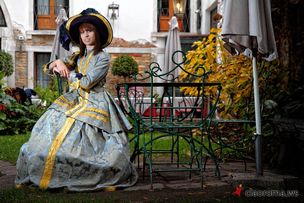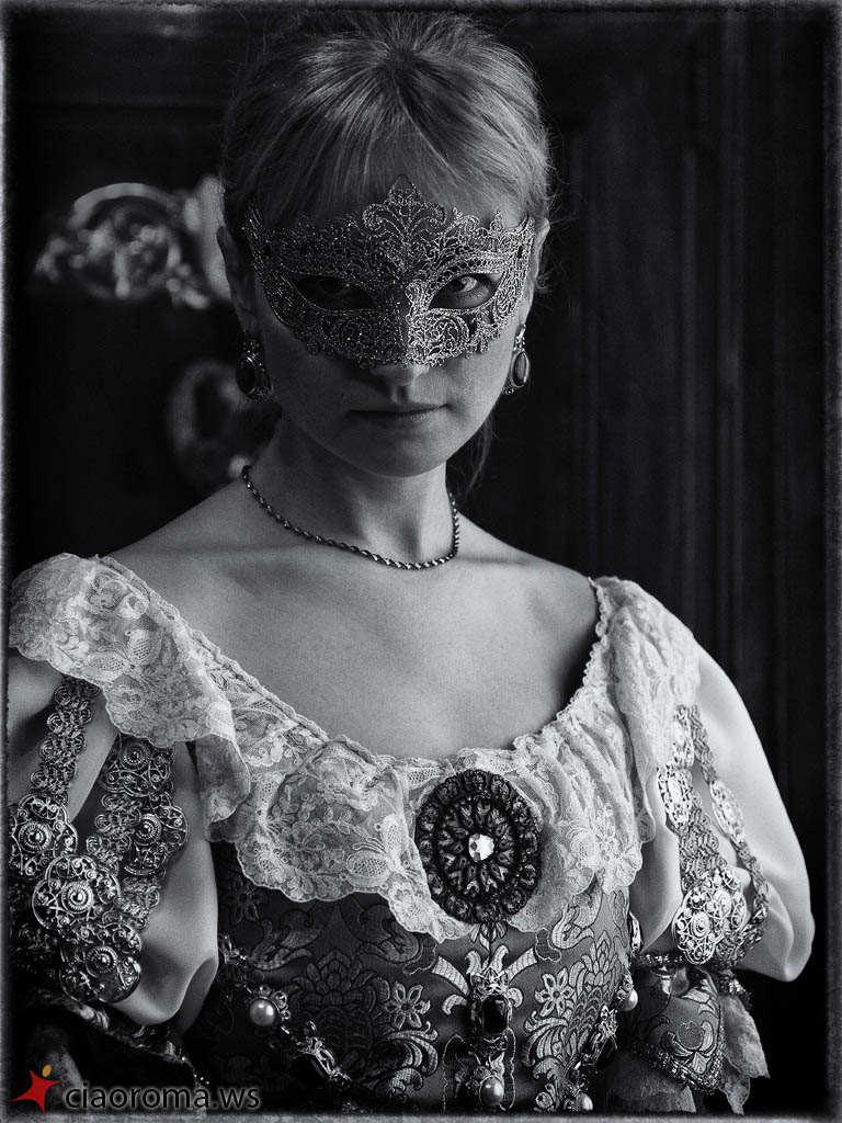 Vika ed io siamo arrivati a Venezia molto presto per studiare bene i percorsi fotografici dove condurre successivamente gli sposi per realizzare le loro foto. All'alba eravamo già in stazione ed abbiamo potuto osservare il sorgere del sole sulla laguna, un'immagine che rimane ancora oggi impressa nella mia mente e nel mio cuore. Dopo un'abbondante colazione, siamo andati all'hotel degli sposi, loro erano ancora in abbigliamento comune. Ottemperate le prime disposizioni sulla time line della giornata, gli sposi hanno iniziato le vestizioni in abiti d'epoca. Con loro c'era anche la figlia di lui che ha voluto partecipare a questa giornata di festa. Abbiamo iniziato il nostro giro fotografico come da programma, catturando emozioni e luoghi che potessero lasciare un bel ricordo, il piccolo porto con le Gondole, i canali ed i piccoli ponticelli che uniscono i vari isolati, le maschere esposte nei negozi. Arrivati al Palazzo Abadessa, ci siamo concessi un po' di relax nello splendido giardino caratterizzato da scorci particolari e adornato da alcune forme d'arte raffiguranti manichini dalle strane forme. Qualche scatto romantico prima di proseguire all'interno del palazzo ed iniziare la cerimonia. All'interno della sala ci attendeva già il violinista e Vika che sia era nel frattempo cambiata per prepararsi a celebrare la cerimonia simbolica.