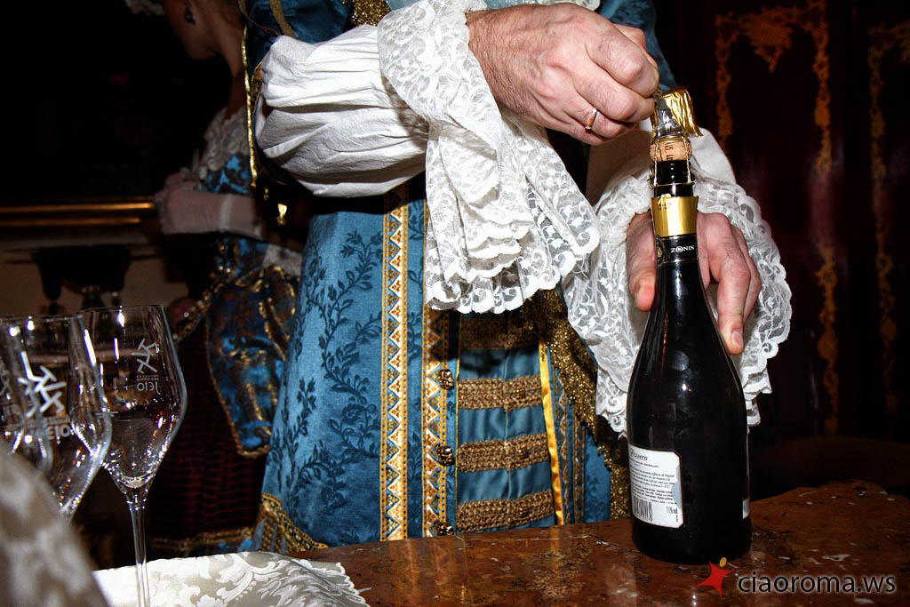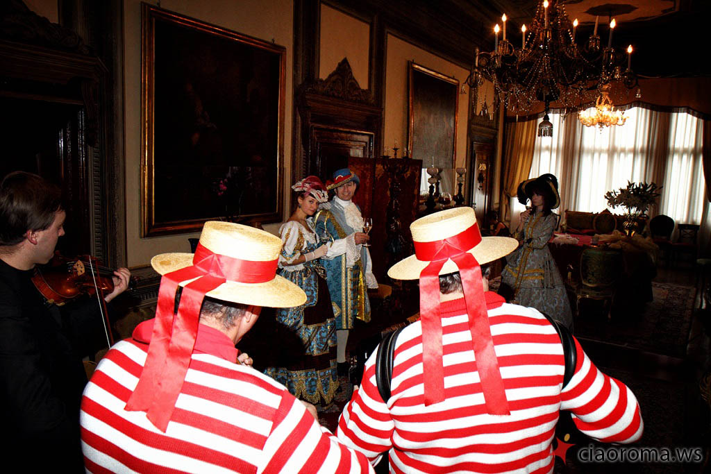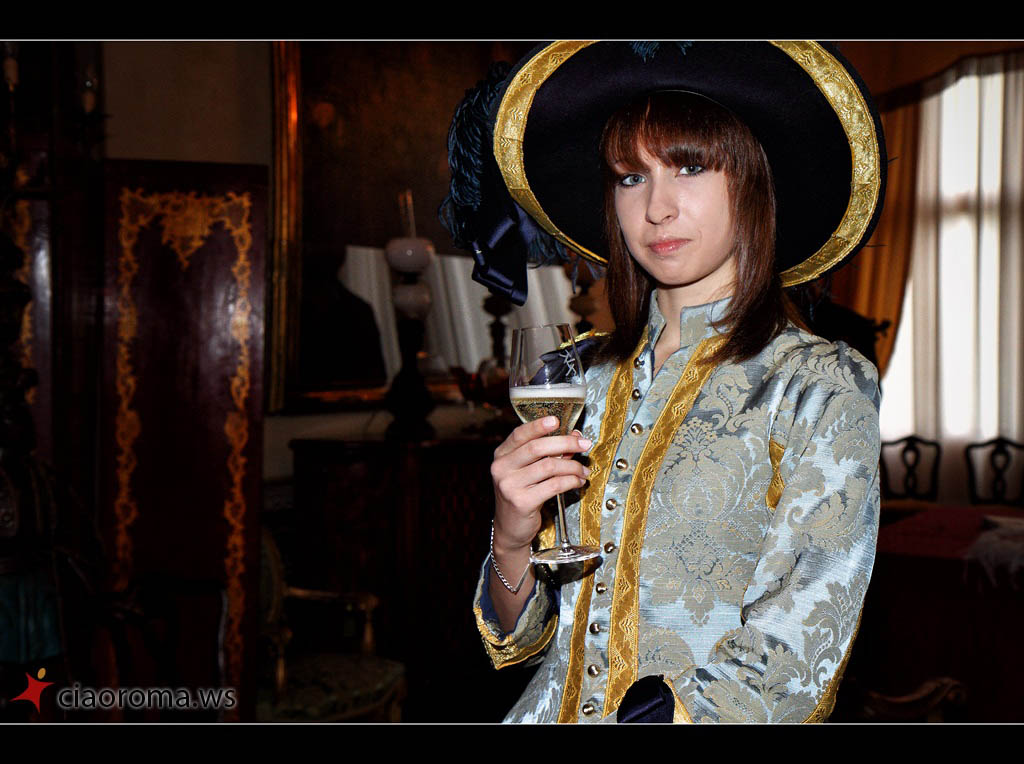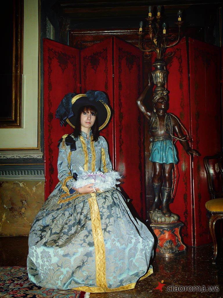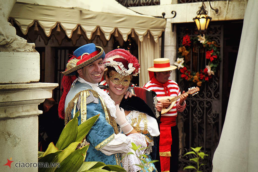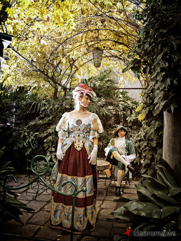 Le fasi iniziali dell'organizzazione si sono svolte nella ricerca dell'abbigliamento più adatto alle caratteristiche degli sposi e all'ambientazione del rito. Si è scelto di affidare quest'arduo compito ad uno degli atelier di costumi d'epoca più importante di Venezia, con centinaia di costumi, guanti, scarpe, cappelli, cinture, piume... che, a gusto degli sposi, riproducessero il clima del XVI secolo. Per quanto riguarda l'ambientazione è stato scelto un Hotel nella zona centrale di Venezia, il palazzo Abadessa, ammobiliato in stile rinascimentale, con decorazioni che ben facevano riportare alla mente lo stile di vita che si viveva all'epoca: tappeti e quadri antichi, vasi in porcellana, lampadari enormi. Per rendere più suggestivo il momento del matrimonio ci si è affidati all'esperienza di un violinista che ha dato vita ad un commovente sottofondo musicale, affiancato durante i festeggiamenti successivi, da altri due musicisti che attraverso i loro strumenti, il mandolino e la fisarmonica, hanno contribuito a creare un'atmosfera indimenticabile. Per finire, si è scelto di liberare le tradizionali colombe bianche e godersi il panorama dei vicoli veneziani su di una gondola. Certo non poteva mancare il banchetto nuziale! Per deliziare i palati degli sposi e dei loro invitati è stato scelto un locale suggestivo ed accogliente nei pressi di Piazza San Marco, il ristorante La Cusina, con vista sulla laguna di Venezia.