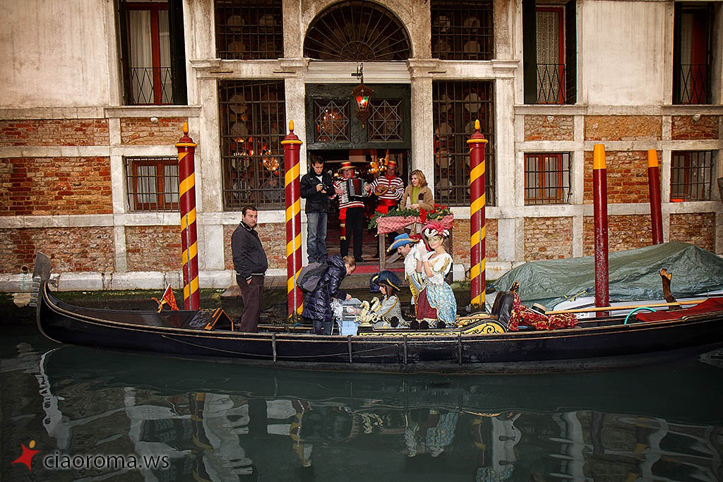 Ho ripreso i momenti salienti della cerimonia, le firme, la stretta di mano, lo scambio degli anelli, ma non mi sono lasciato scappare le emozioni vere ed i piccoli sguardi che gli sposi si scambiano durante la celebrazione. Finita la cerimonia, hanno fatto il loro ingresso in sala il mandolinista ed il fisarmonicista vestiti con abiti del posto, hanno suonato durante il piccolo buffet organizzato per l'occasione. L'aiuto dello spumante ha reso tutti più rilassati, ne ho approfittato per catturare qualche ritratto della splendida Luba e del suo sposo Aleksandr nonché della amabile figliola Anna. Scesi nella hall del palazzo, uscendo dalla parte posteriore, ci aspettava la gondola e le colombe bianche. Per riprendere i momenti del lancio delle colombe e della salita in gondola degli sposi mi sono posizionato dalla parte opposta del canale. Il giro in gondola è stato accompagnato dalle parole in tipico dialetto veneto del nostro gondoliere, che hanno reso ancor più romantico ed indimenticabile la nostra navigazione. Scesi nei pressi di Piazza San Marco, ci siamo concessi gli ultimi scatti fotografici. I turisti nella piazza erano davvero tanti e pian piano stava diventando difficile riuscire a fotografare senza includere qualcuno. Abbiamo deciso di finire il nostro percorso e tornare all'Hotel.
