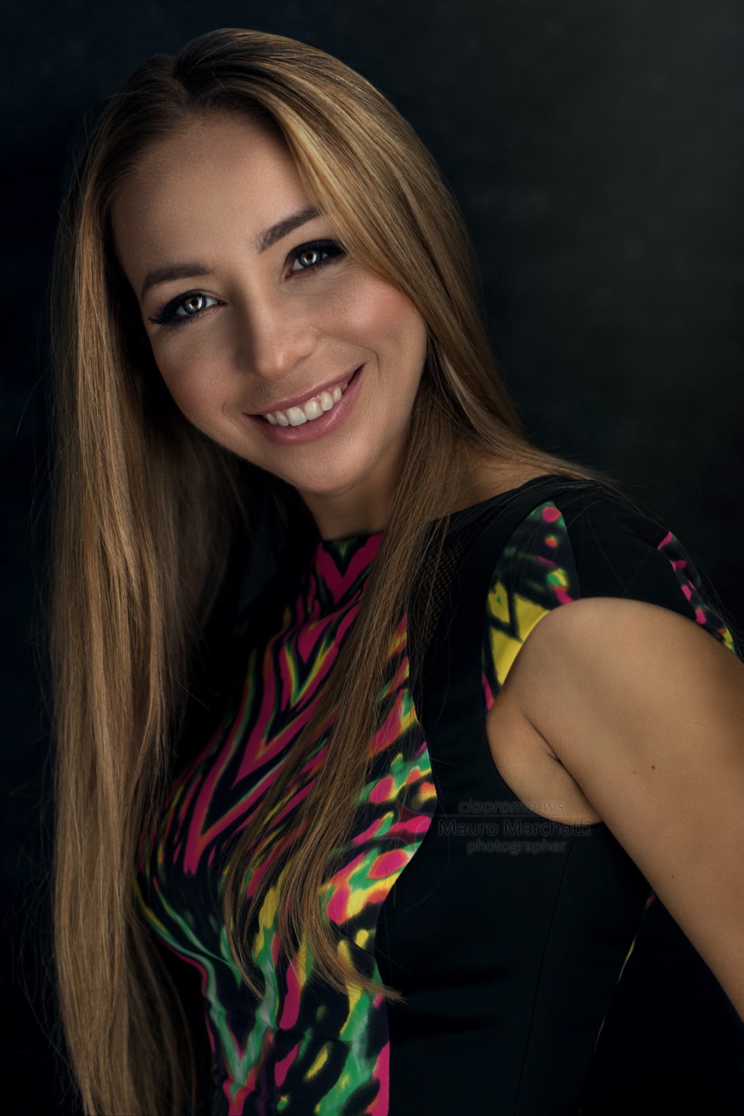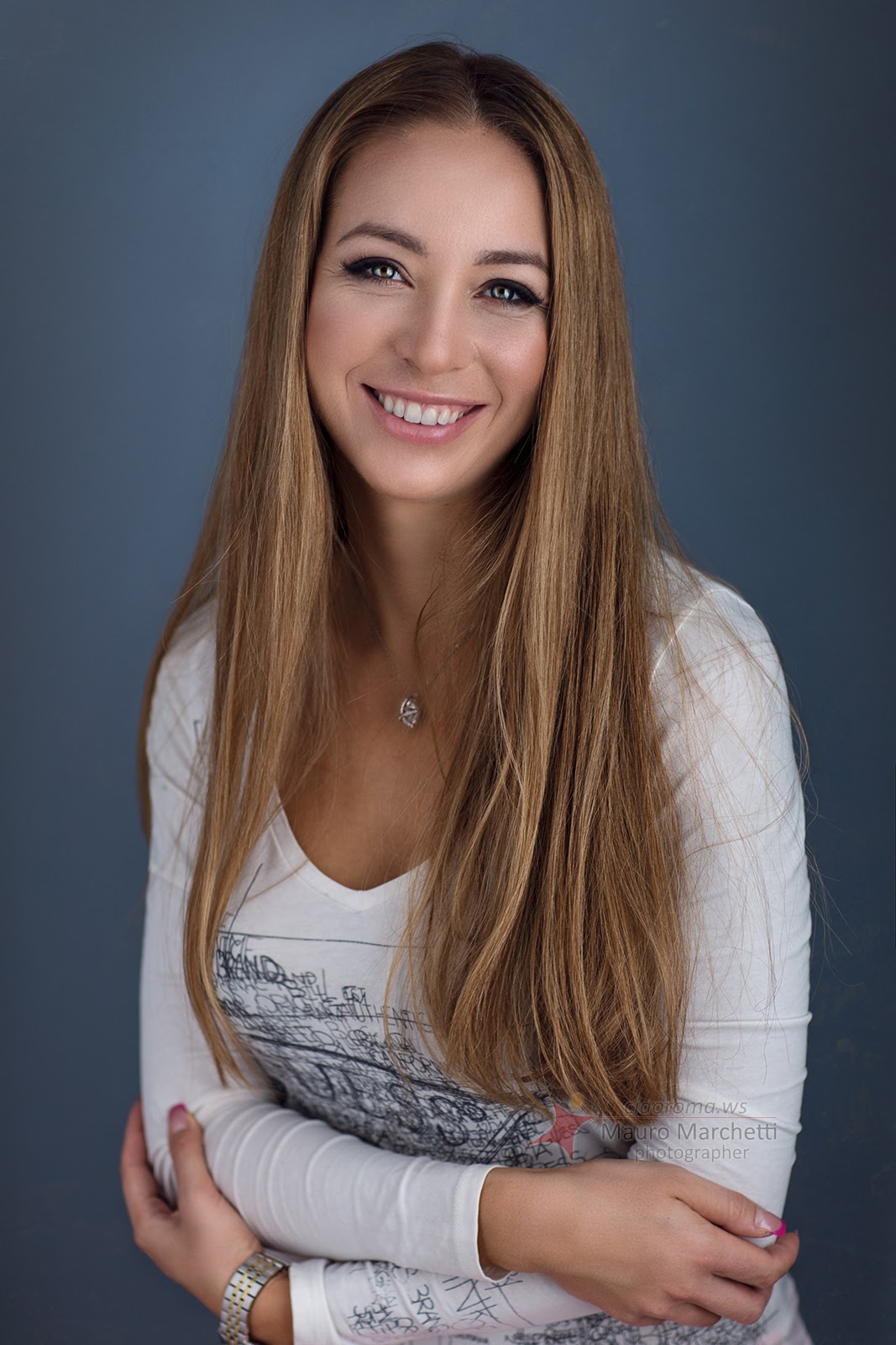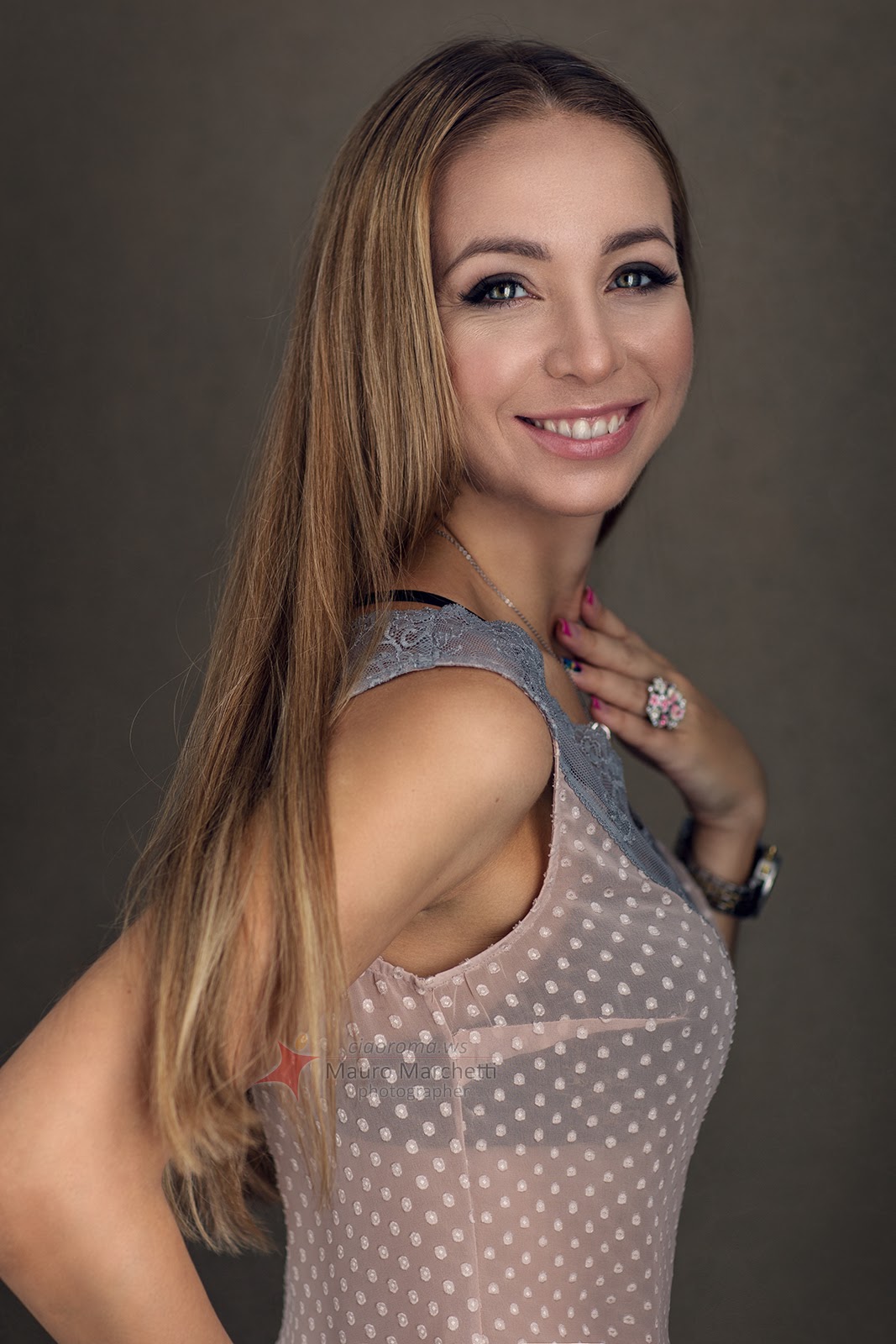Il tutto si è svolto durante il periodo di pranzo. Dopo il trucco e la piccola aggiustatina ai capelli che le abbiamo organizzato, siamo passati al servizio fotografico in studio. Naturalmente i primi scatti, essendo Maria alla sua prima esperienza, risultavano un po' rigidi e con poca partecipazione, è normale, ci si trova a guardare una macchina fotografica utilizzata da una persona che si conosce a malapena e, per una non addetta ai lavori, è complicato esternare il proprio stato d'animo e le proprie emozioni! Però è bastato superare i primi dieci minuti di riprese che la confidenza è subito venuta fuori ed è risultato facile catturare delle belle emozioni che Maria manifestava.
